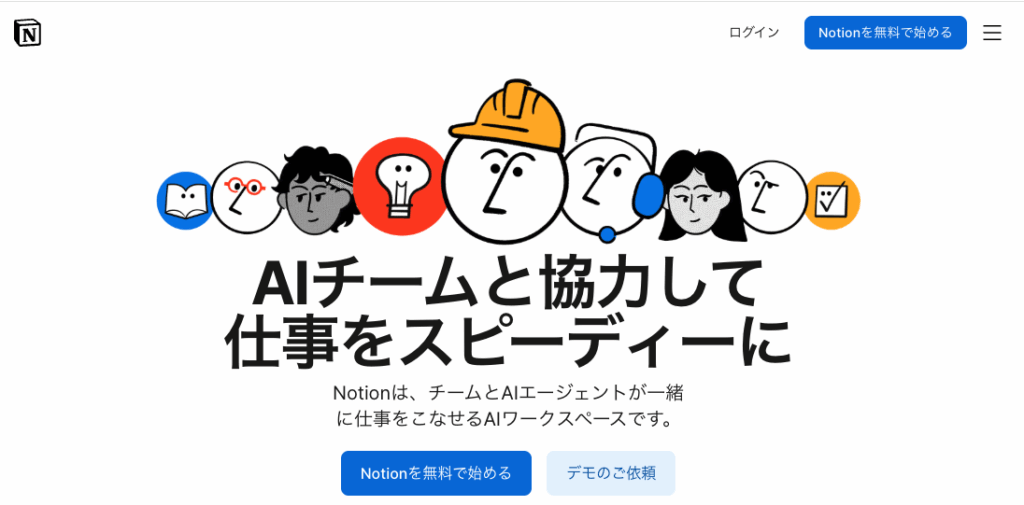 NotionはNotion社が提供する、タスク管理などの多様な機能を共同で行えるAI搭載サービスです。サービス内の対話型のAIを利用することで、メールや会議アジェンダの自動生成、アイディアのブレインストーミングなどが可能です。