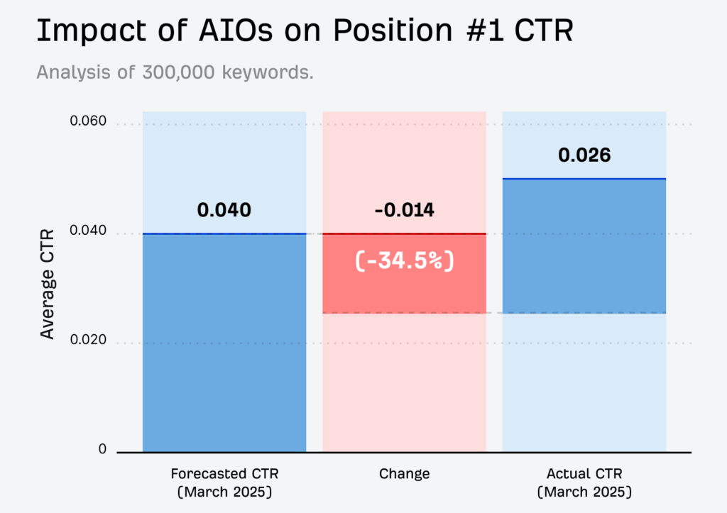 一部データでは、検索順位1位のCTR(クリック率)が前年比で約34.5%も減少した