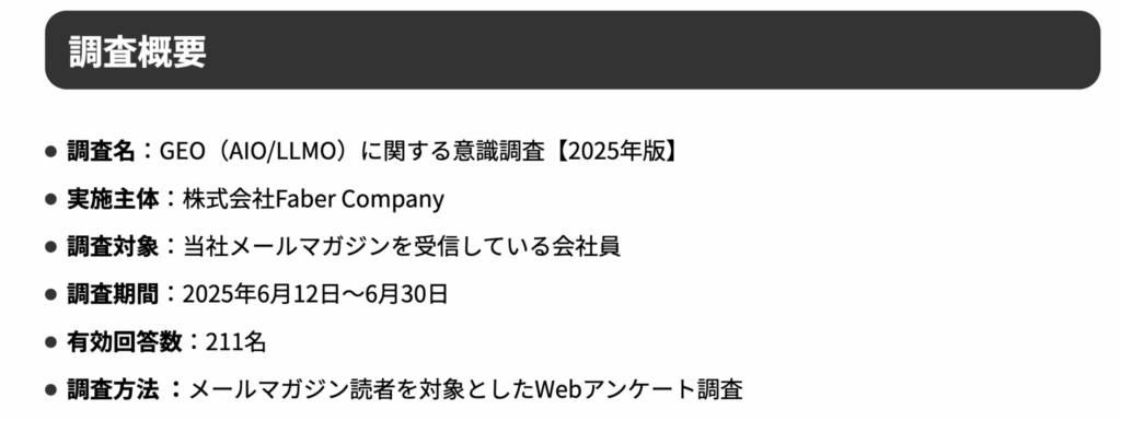 以下は、当社がリリースした「GEOに関する意識調査レポート」の表記例です。
