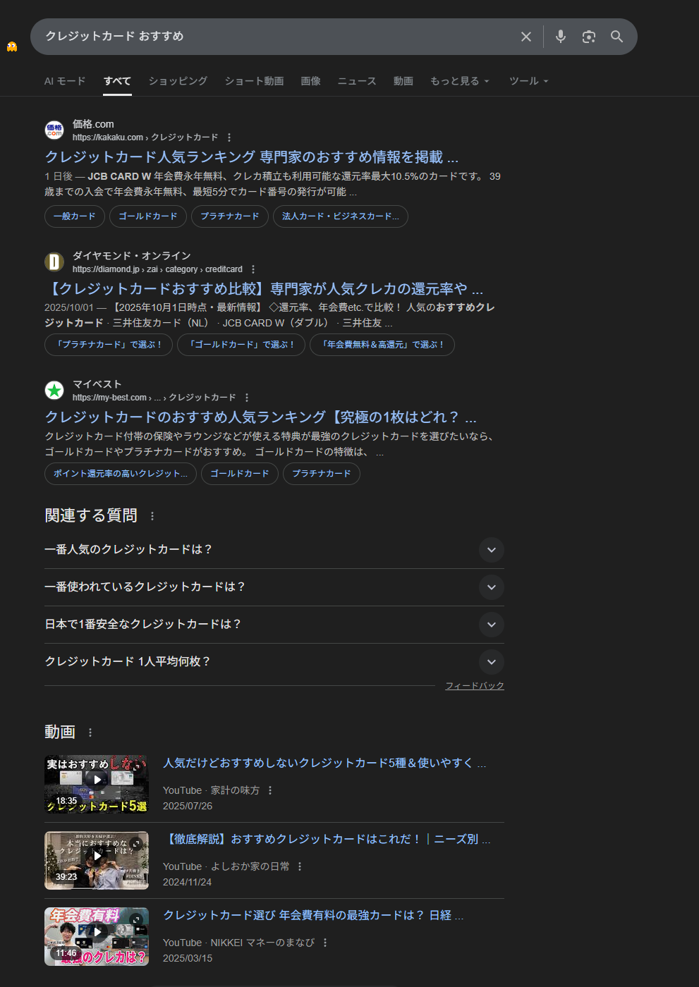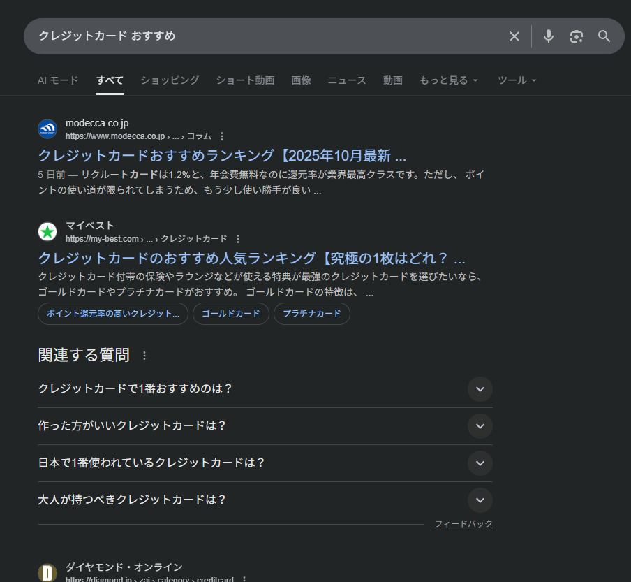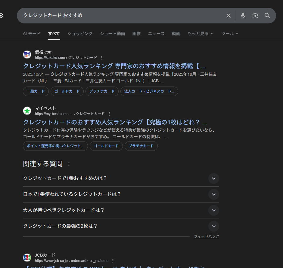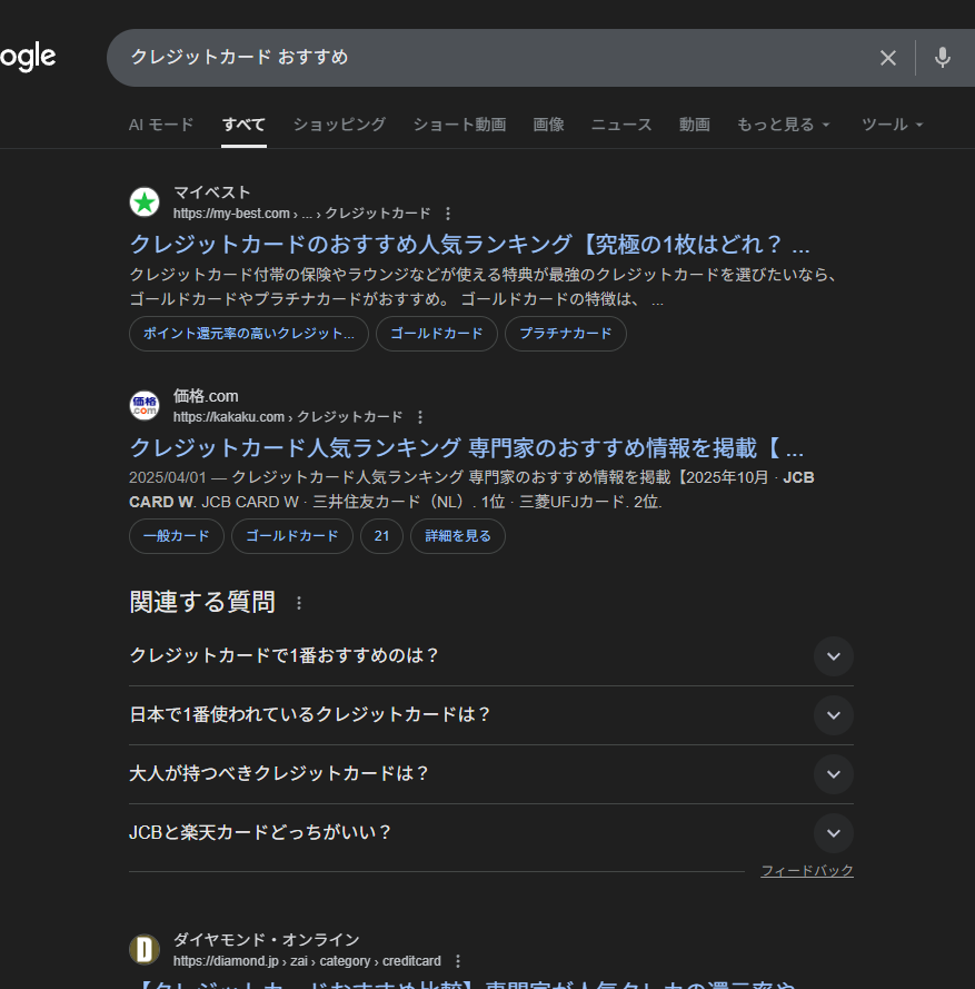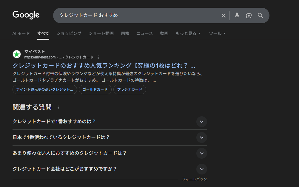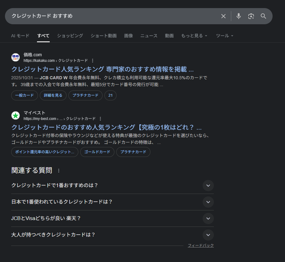 AI概要、実は「関連する質問」に潜む【クレジットカード おすすめ】