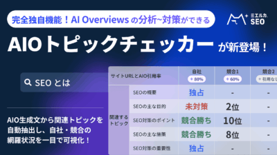 ニュース ミエルカSEO独自の新機能!「AIOトピックチェッカー」を搭載 ~Google AI Overviewsの生成文から関連トピックを自動抽出し、自社・競合の網羅状況を一目で可視化~ 更新日:2025.10.22 公開日:2025.10.27
