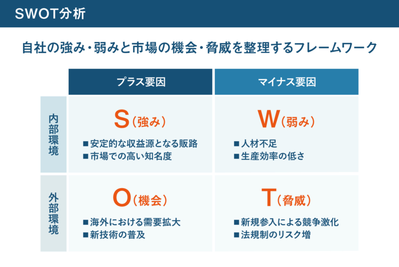 プラス要因とマイナス要因を、内部環境と外部環境に分けて整理する方法です。