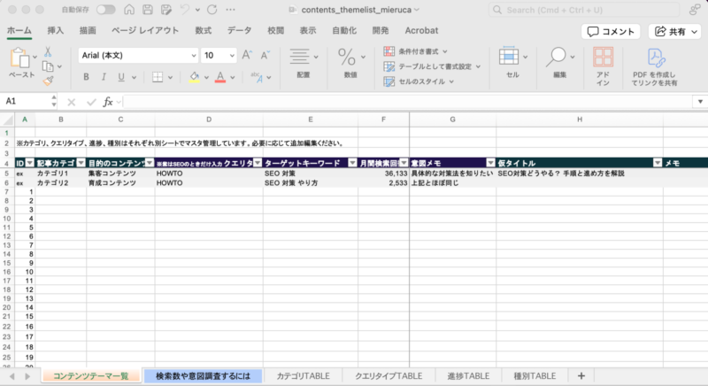 コンテンツテーマ管理シートをここから無料ダウンロードする!