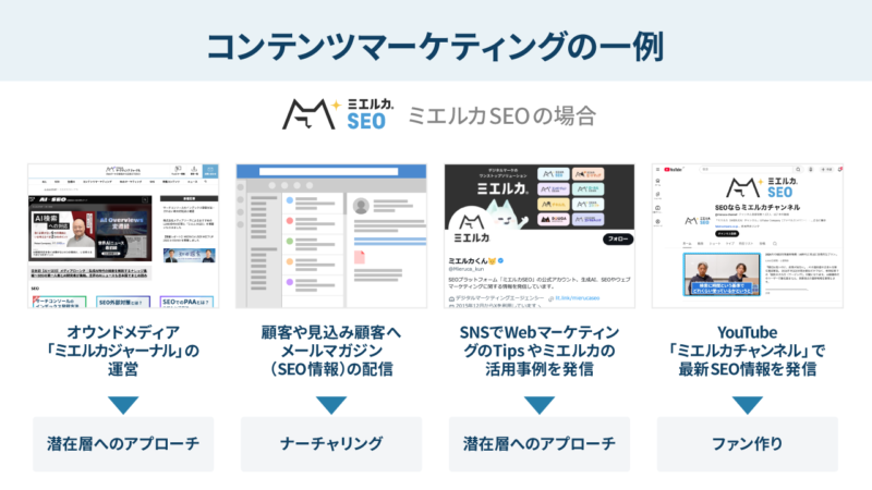 - YouTube「ミエルカチャンネル」でSEOの情報を発信し、ファンをつくる活動