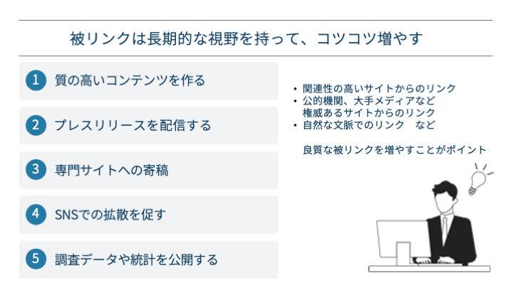 - 5:良質な被リンクを獲得する(外部SEO施策)