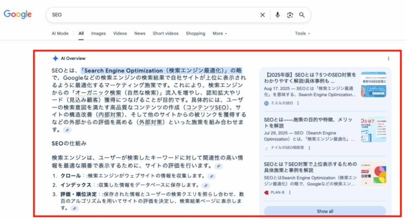 ※関連記事:Google検索「AI Overview」とは?機能や影響・SGEとの違い