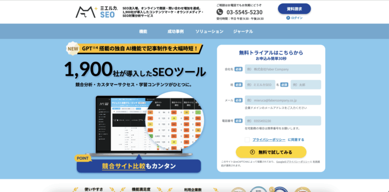 ミエルカSEOでは、従来のSEO施策を支援する機能はもちろん、ユーザー体験の盛り込み方のアドバイスを含めたCS(カスタマーサクセス)のご提供もしております。興味のある方は、ぜひ一度お問い合わせください!