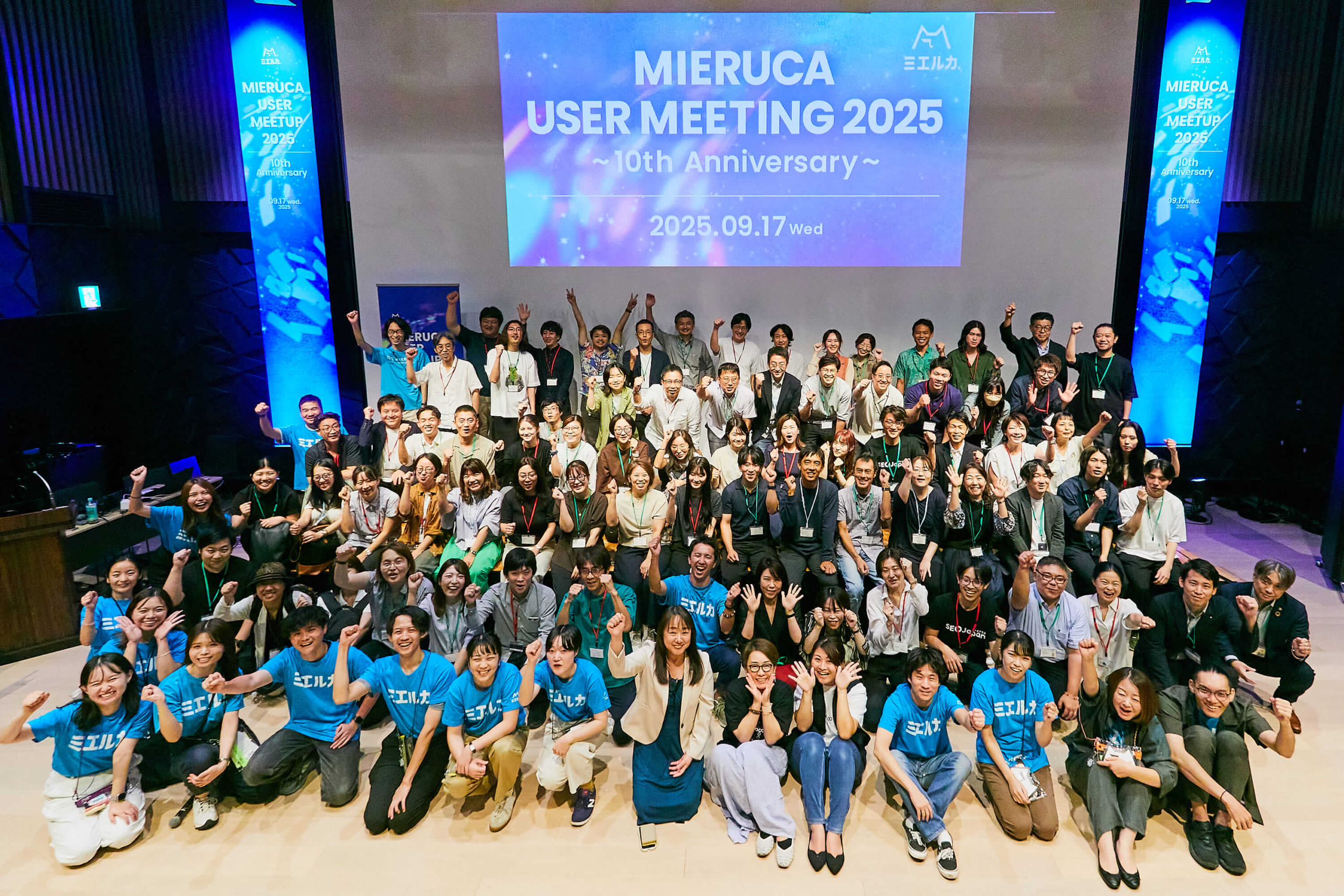 2025年9月17日(水)、TODA HALL & CONFERENCE TOKYOにて、「ミエルカユーザー会」を開催しました!今年3月にミエルカはサービスリリースから10周年を迎え、節目の年をユーザーの皆さまと一緒にお祝いしたいという想いから、「10th Anniversary」をテーマに掲げました。