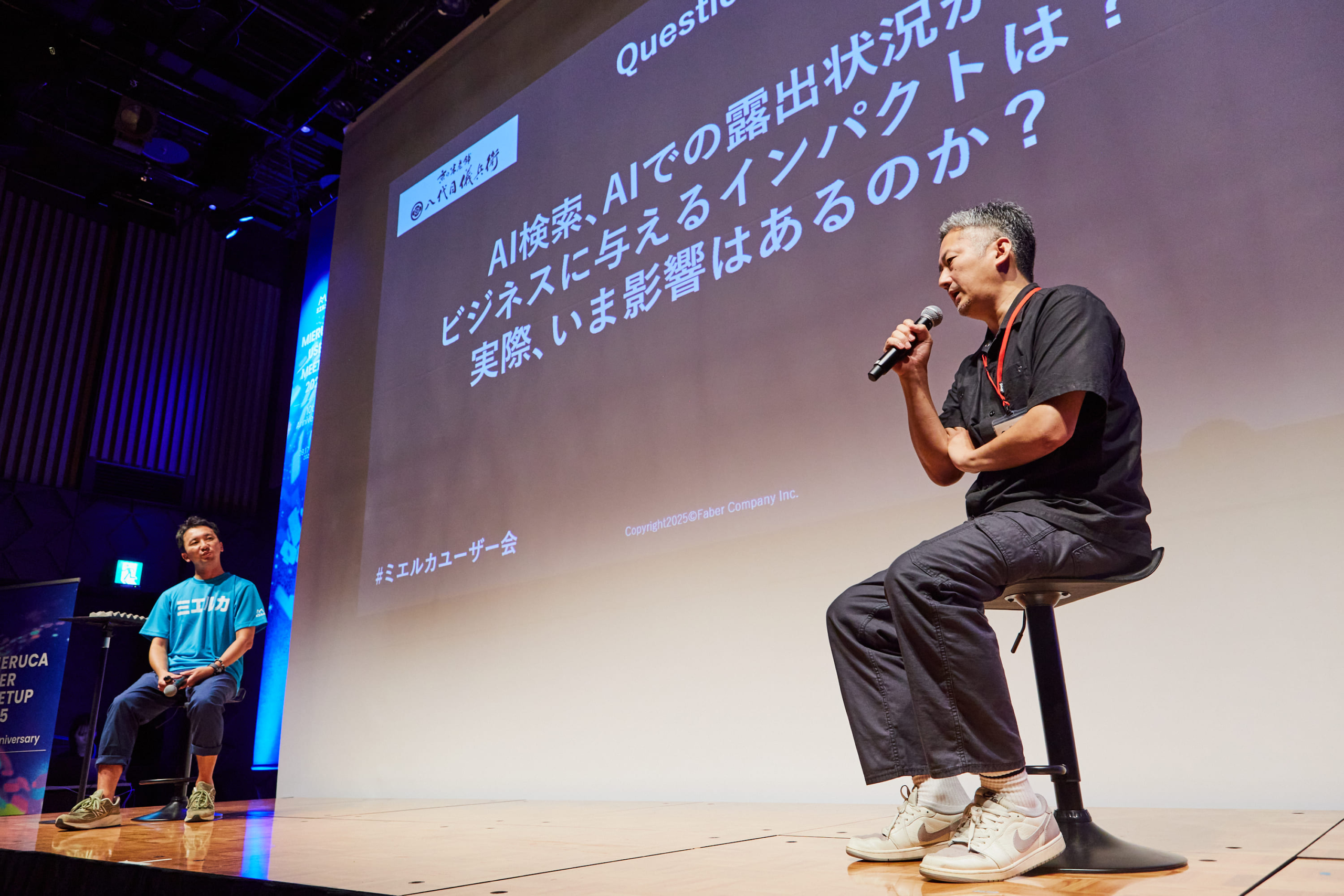 まさにGEO施策を支援している 八代目儀兵衛 取締役CMO 神徳氏を壇上にお迎えして、AI検索時代におけるブランド露出のビジネスインパクトについても語っていただきました。