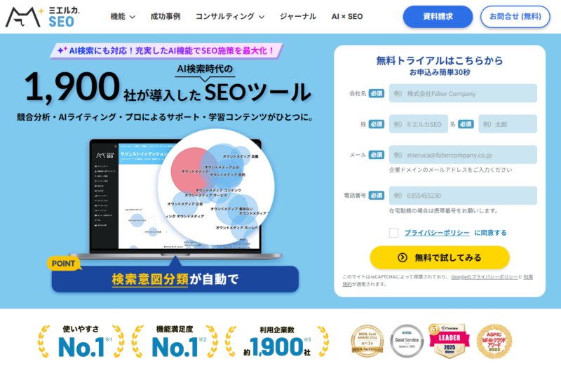 5.BtoB:SEO分析ツール「SEOミエルカ」(SaaS)