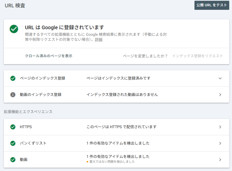 パターン1. ステータス表示が「URLはGoogleに登録されています」