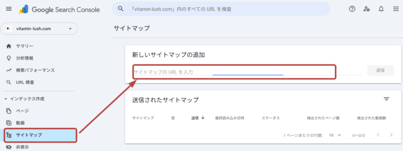 - サイトマップのURL(例:sitemap.xml)を入力※事前にアップロードしておく