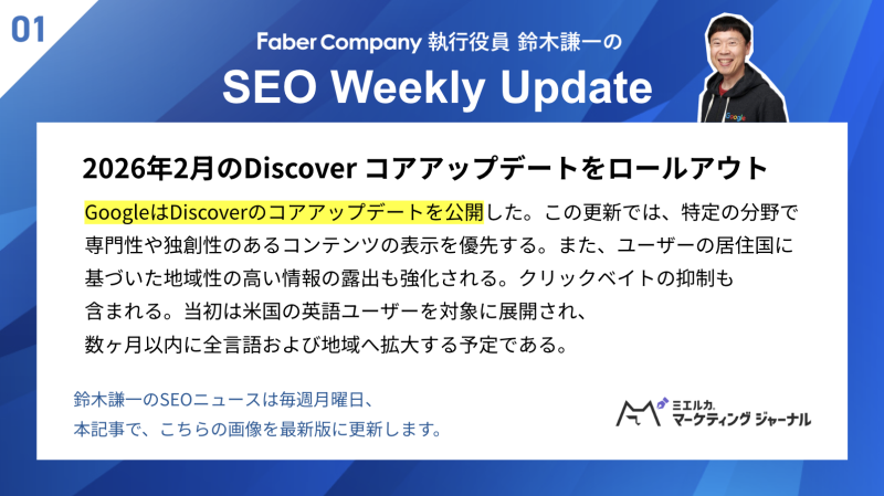 ※本記事の下部にて、SEOニュースのサマリー画像を毎週更新中! 最新画像は2026.02.16更新。ぜひクリックしてください