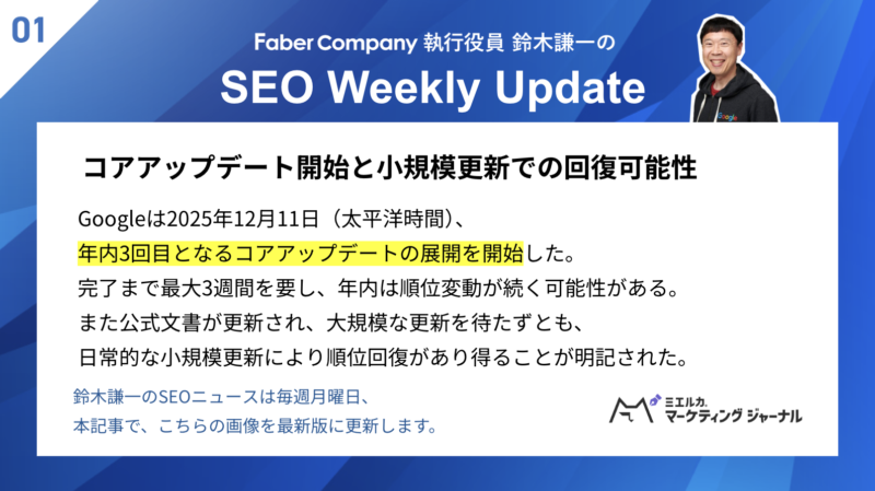 ※本記事の下部にて、SEOニュースのサマリー画像を毎週更新中! 最新画像は2025.12.15更新。ぜひクリックしてください