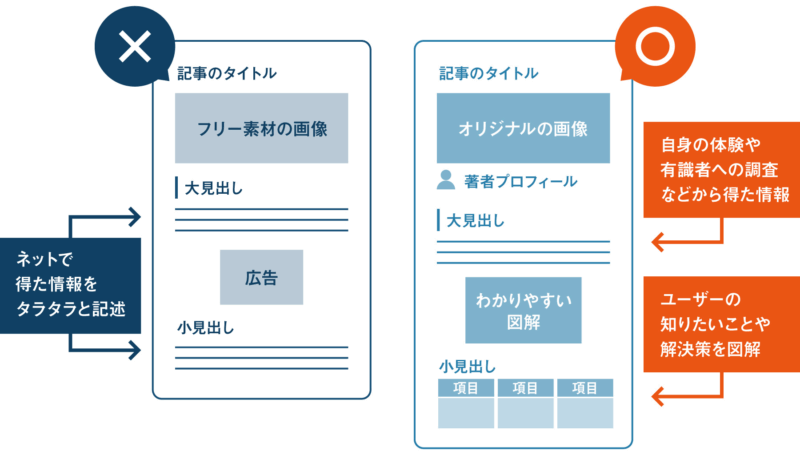 - 2.記事執筆者の個性や個人的意見、一次情報、ビジュアル要素を必ず入れる