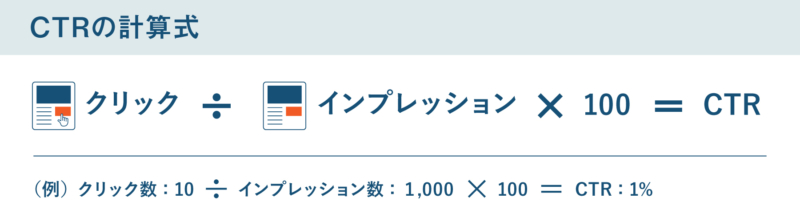 CTR(%)= クリック数 ÷ 表示回数(インプレッション) × 100