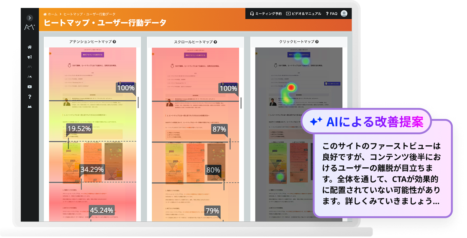 ヒートマップ自動解析(β)ヒートマップデータをAIが自動で分析。