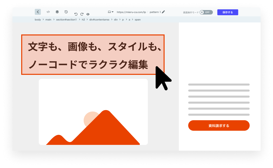 開発部門や制作会社への依頼、本番環境への実装待ちなしに、手元でページの編集が可能。