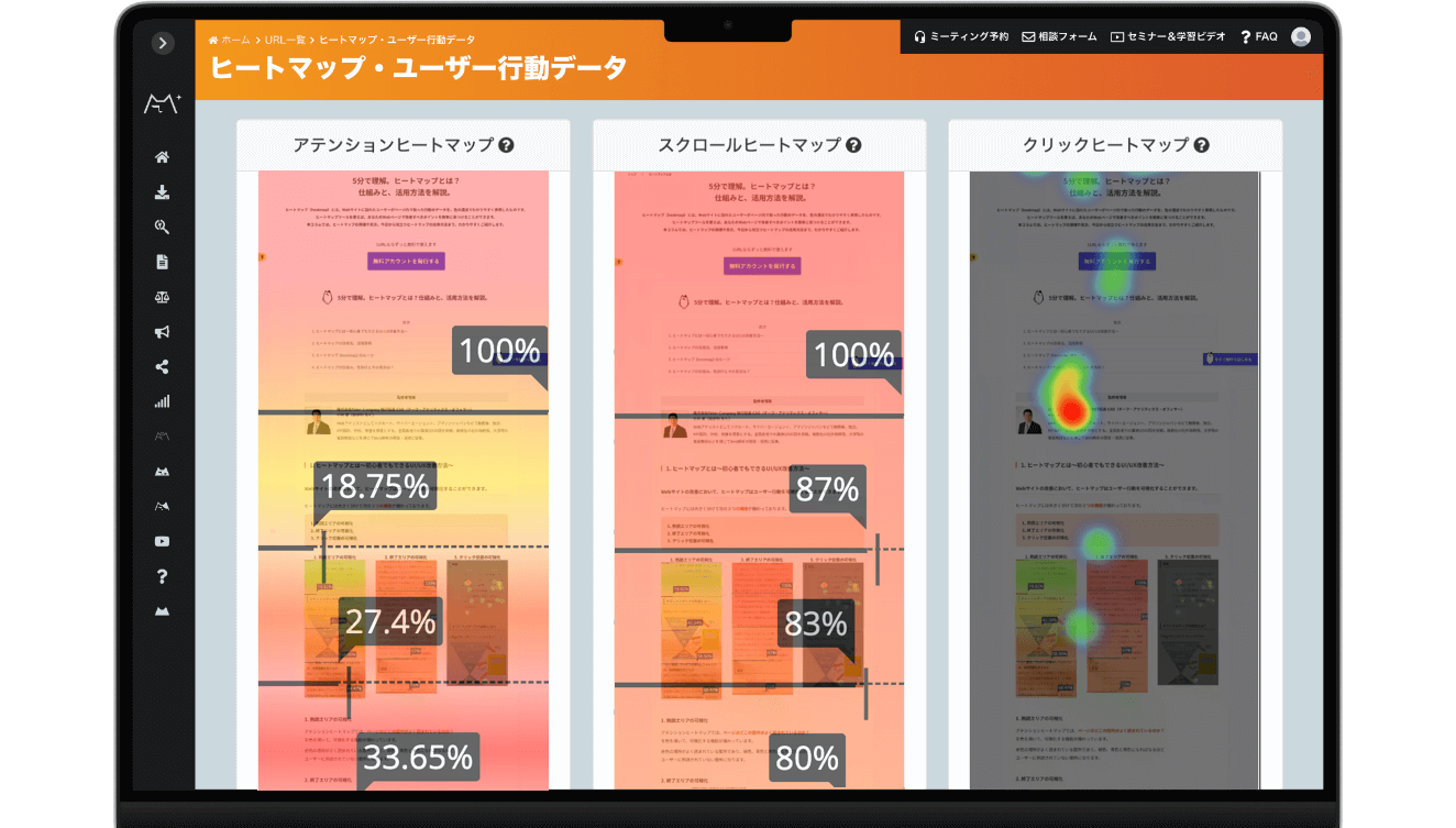 ヒートマップから読み取れるデータをもとに改善に繋げる方法を実例と共にご紹介します。