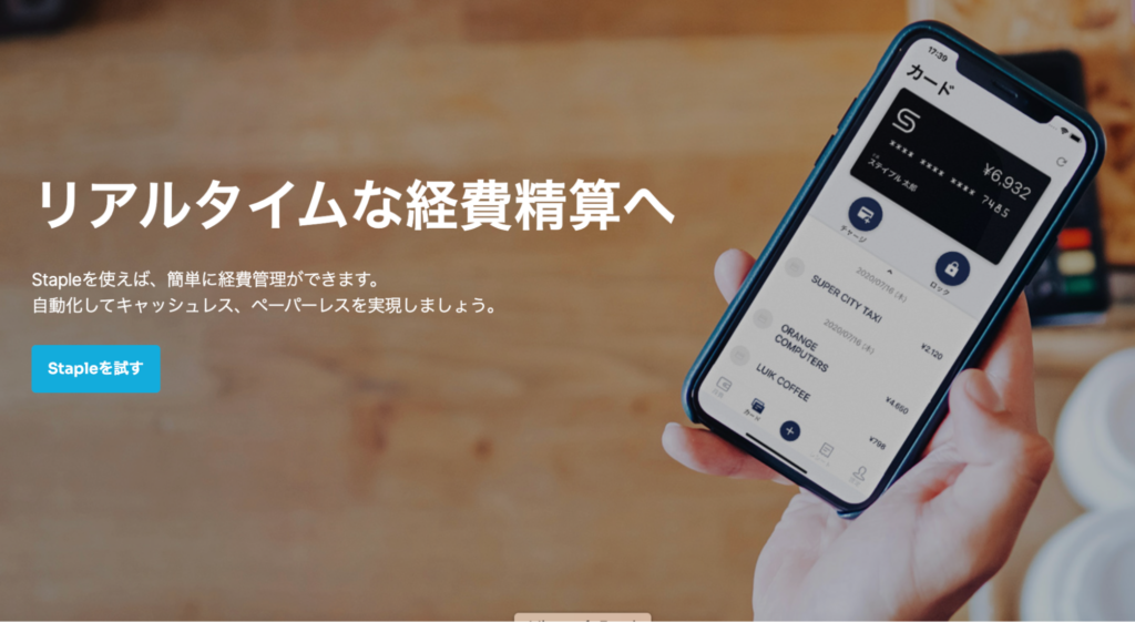Stapleは、キャッシュレスを通じて経費精算業務を効率化することを目的としたアプリです。