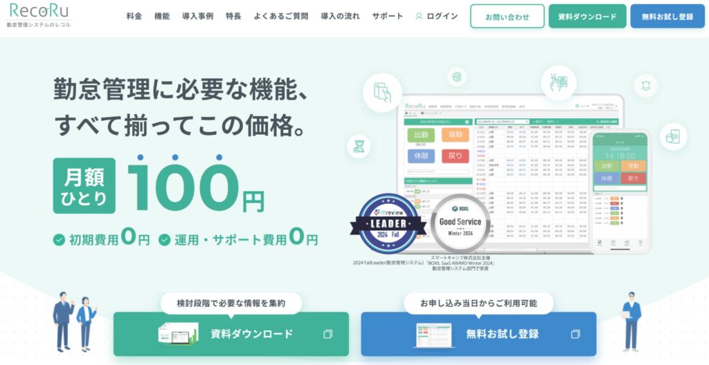 RecoRu(レコル)は、導入コストと運用コストが比較的安価なので、低予算で勤怠管理を効率化したい企業に最適です。